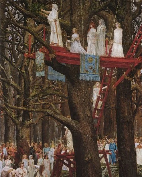 Nineteenth Century Revival: In the nineteenth century, there was a revival of interest in Druidic customs, particularly things like how these ancient priests used to gather mistletoe from the sacred oak. These ancient British rites became a popular subject for art.